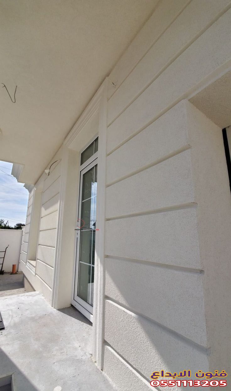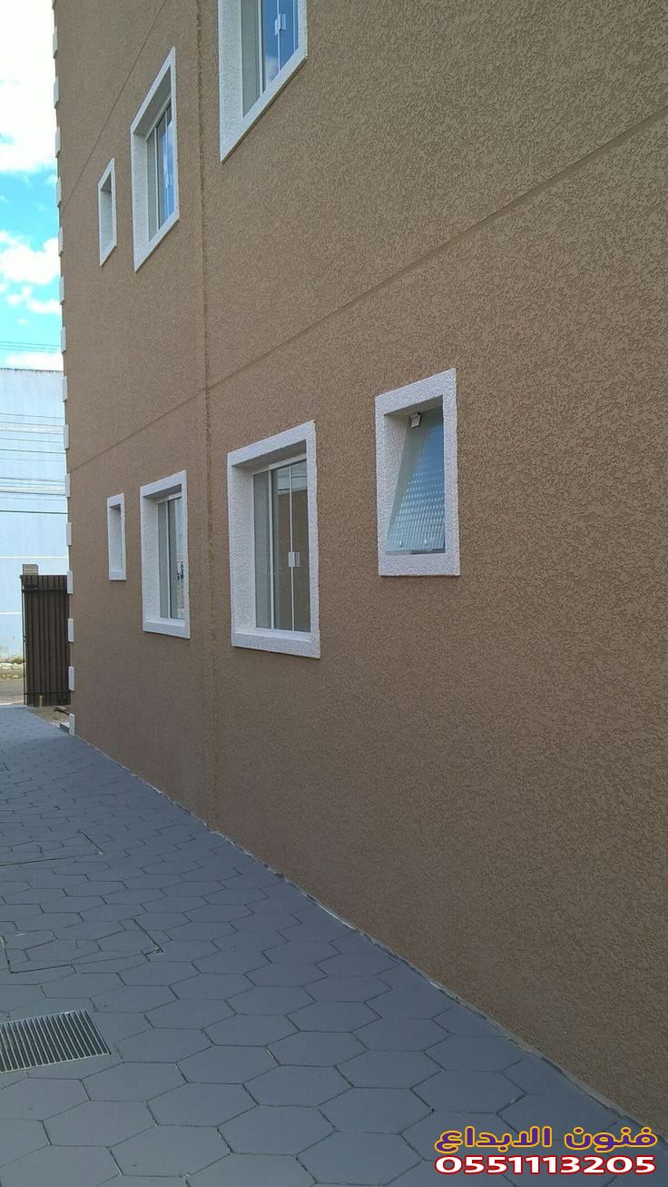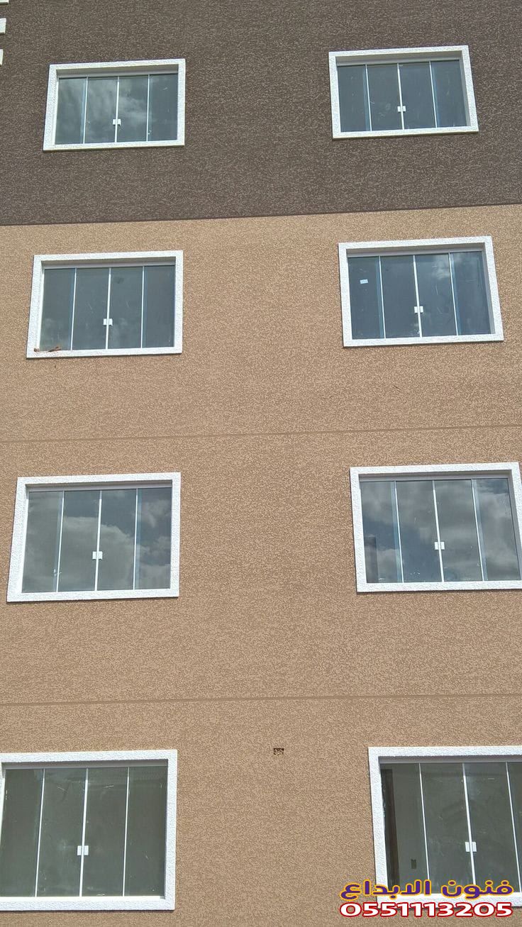 يتم تطبيق الدهان باستخدام رشات محببة التي تضفي texture خاص على الواجهة، مما يعطي نتائج رائعة وجمالية.