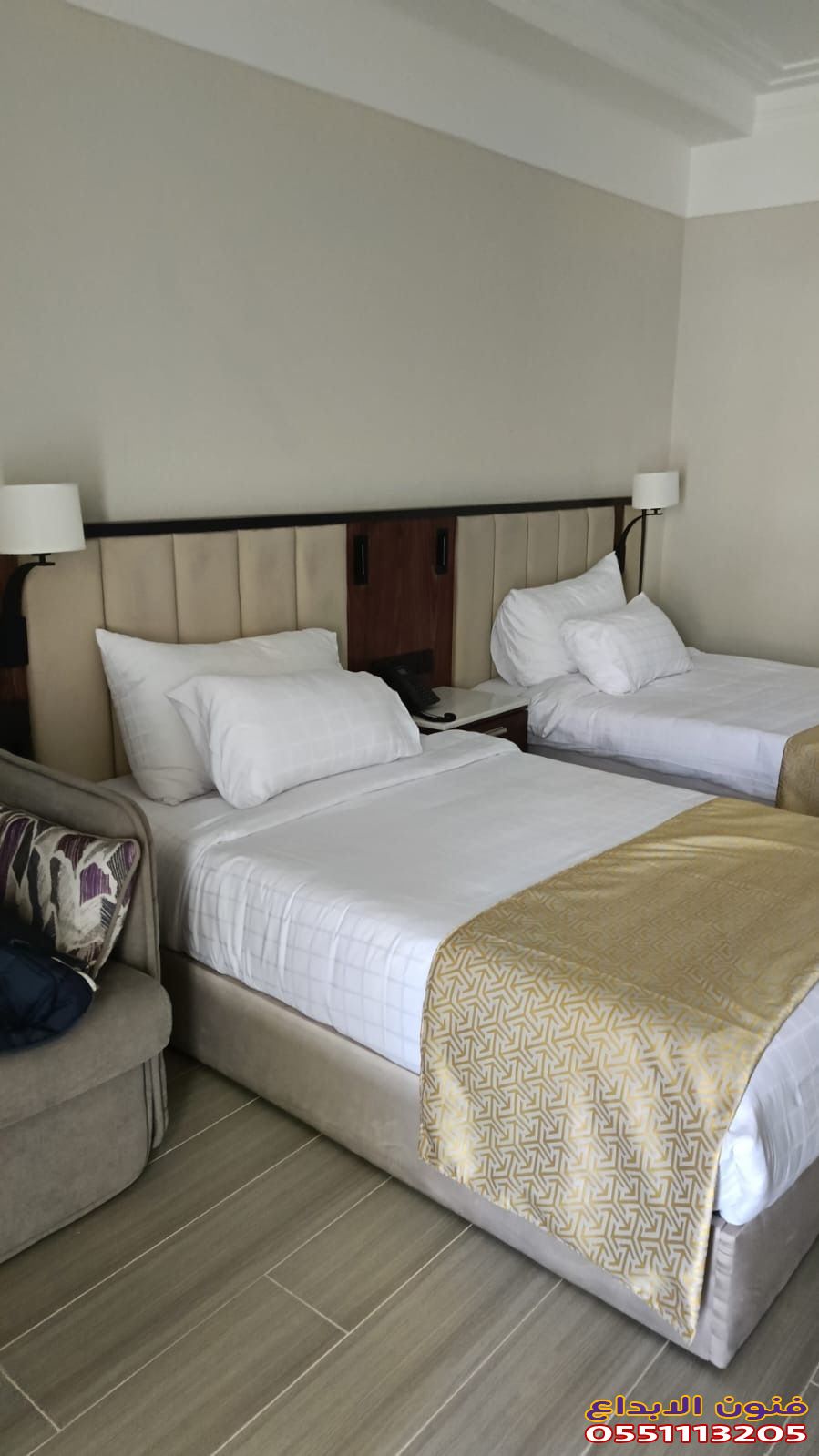 - الفنادق → ألوان هادئة ورحبة